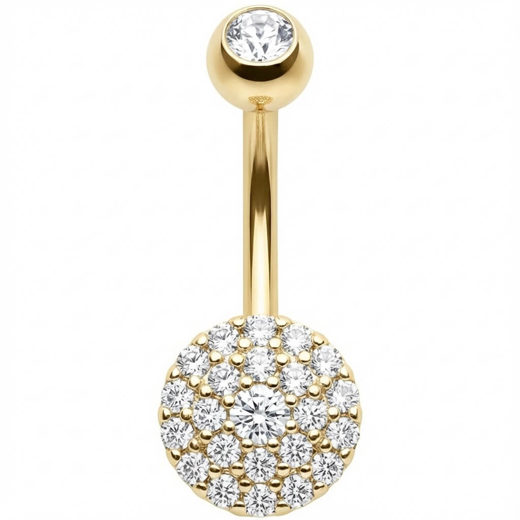 Bring deinen Bauch zum Strahlen! Dieses Schmuckstück besticht durch eine runde Scheibe, die komplett mit funkelnden Kristallen besetzt ist – ein absoluter Hingucker. Perfekt für den sexy Sommer-Look und alle, die es glitzernd mögen. Gefertigt aus hochwertigem 316L Chirurgenstahl, bietet es dir besten Tragekomfort. Zeig, was du hast!