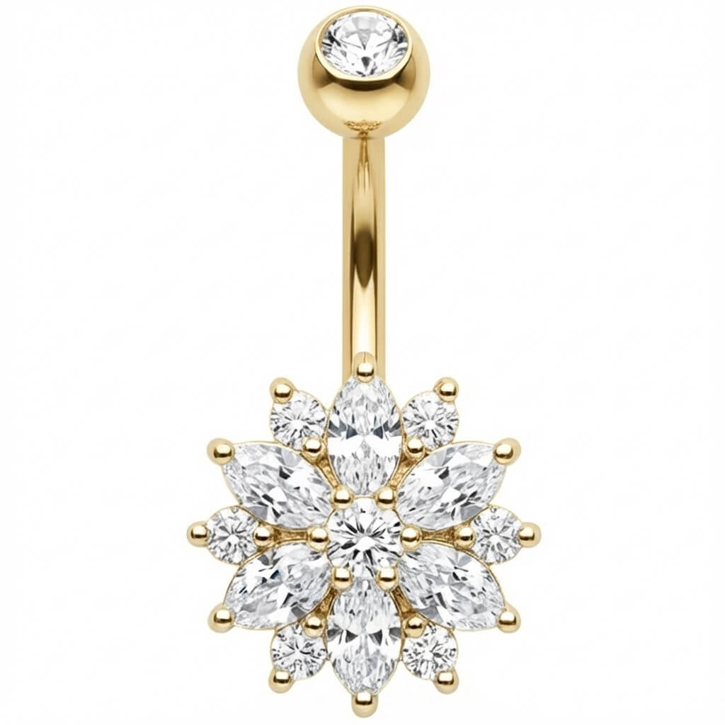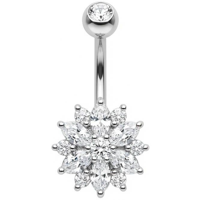 Mach dich bereit für den ultimativen Sommer-Vibe! Dieses traumhafte Schmuckstück besticht durch eine funkelnde Blume aus Marquise-Kristallen, die sofort alle Blicke auf sich zieht. Ein echter Hingucker für deinen Bauchnabel, der sexy und elegant zugleich wirkt. Gefertigt aus hochwertigem 316L Chirurgenstahl, sitzt es perfekt und strahlt mit der Sonne um die Wette. Hol dir dein neues Lieblings-Accessoire für heiße Tage!