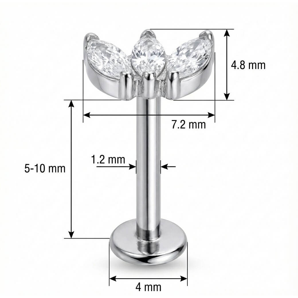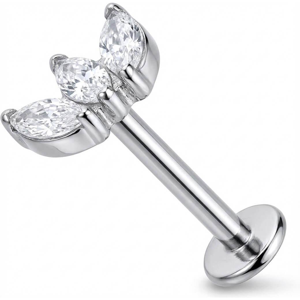 Bereit für ein echtes Highlight? Dieser wunderschöne Fächer aus drei funkelnden Kristallen im Marquise-Schliff bringt dein Ear-Game auf das nächste Level. Egal ob im Helix, Conch oder Flat – dieses Schmuckstück sorgt für den perfekten Glamour-Faktor. Gefertigt aus hochwertigem Titan, ist es super hautverträglich und langlebig. Gönn dir diesen strahlenden Hingucker für deinen Look!