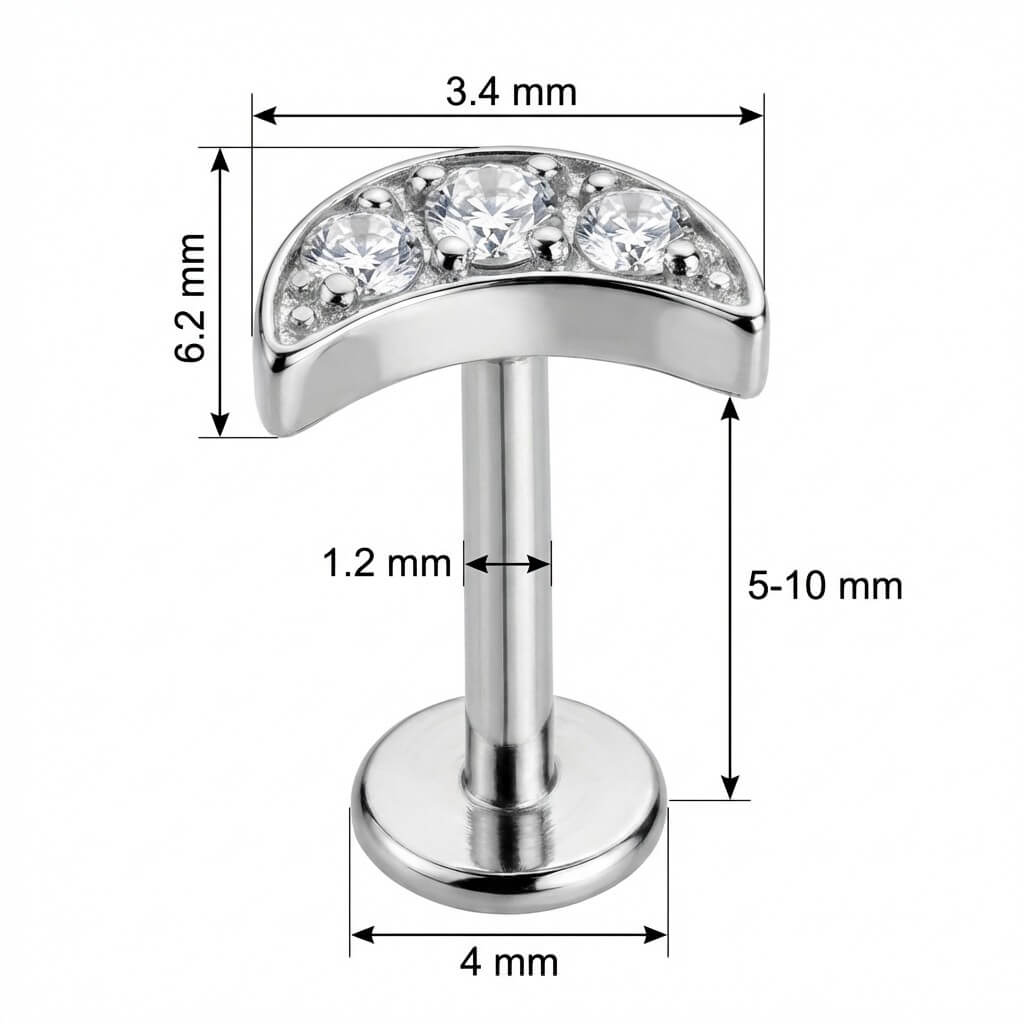 Titan Labret Gebogener Bogen Drei Kristalle Innengewinde