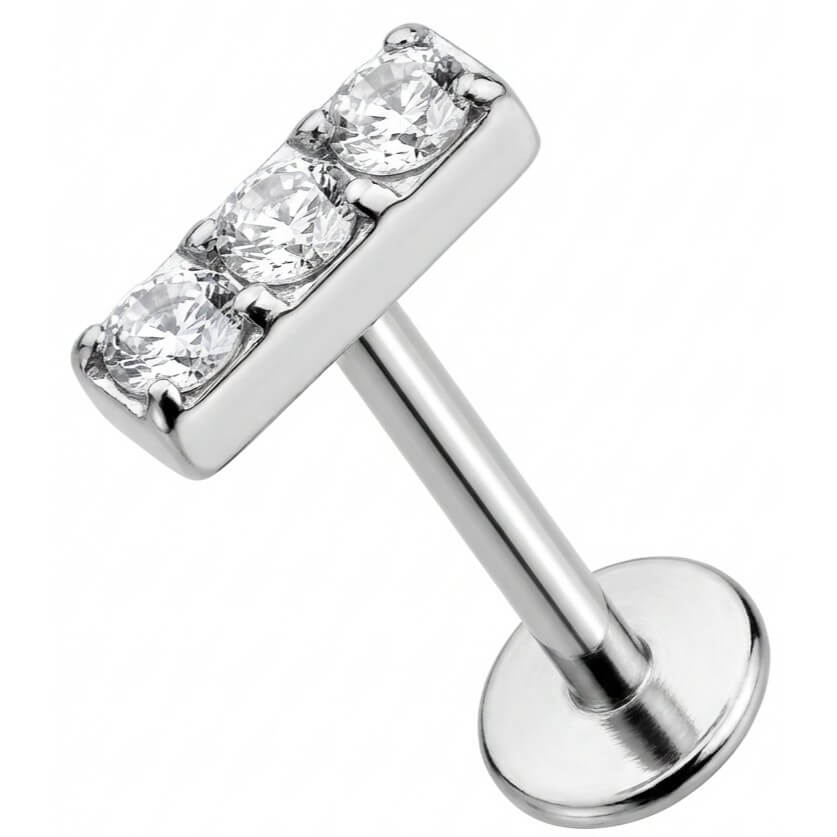 Titan Labret Stab mit drei Kristallen Innengewinde