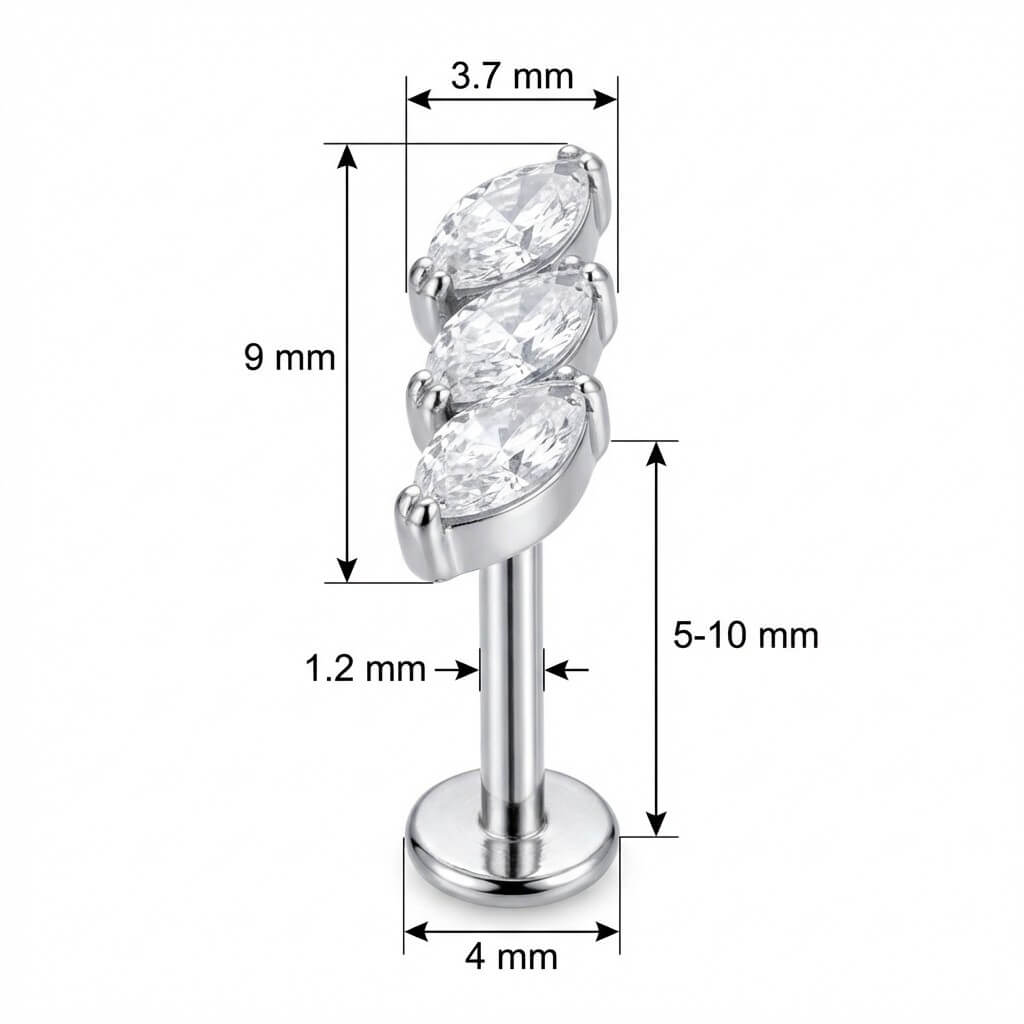 Titan Labret Dreifacher Marquise Kristall Bogen Innengewinde