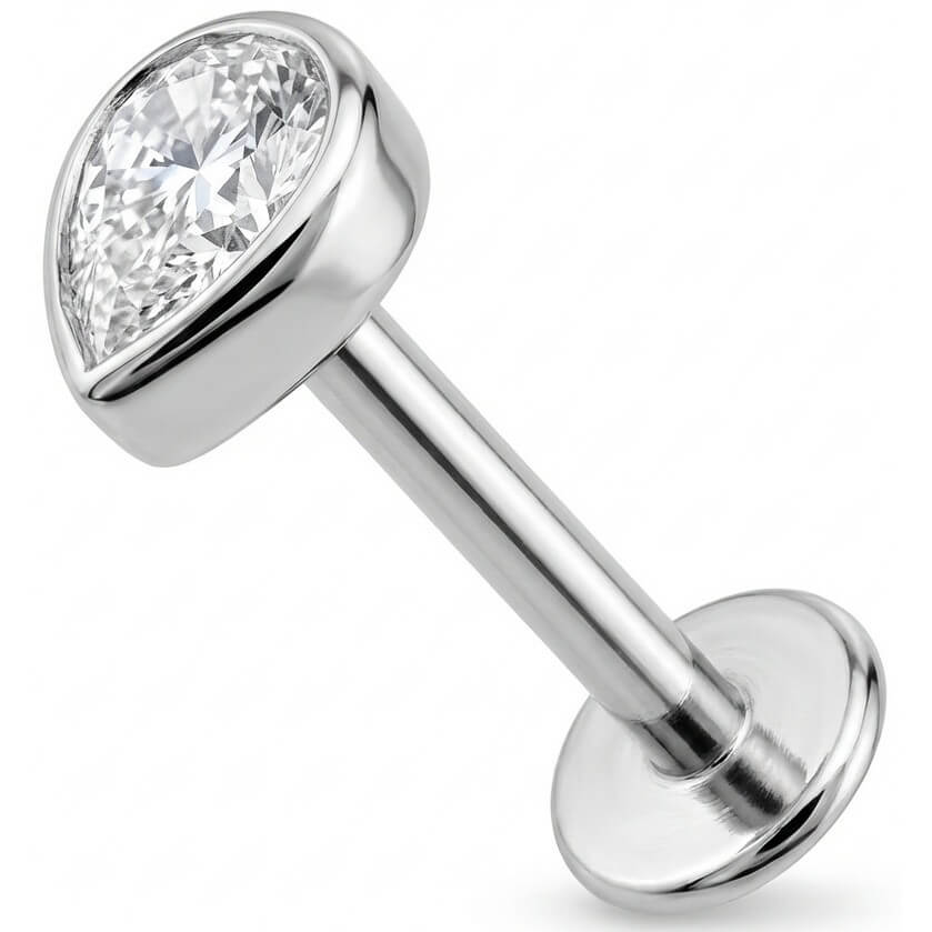 Verliebe dich in diesen funkelnden Tropfen! Das kristallklare Design in der glatten Zargenfassung ist ein echter Hingucker und verhindert lästiges Hängenbleiben an Kleidung oder Haaren. Egal ob Helix, Tragus oder Lobe – dieses Schmuckstück sitzt perfekt. Gefertigt aus hochwertigem Titan, ist es super hautverträglich und langlebig. Hol dir den ultimativen Glow für dein Piercing!