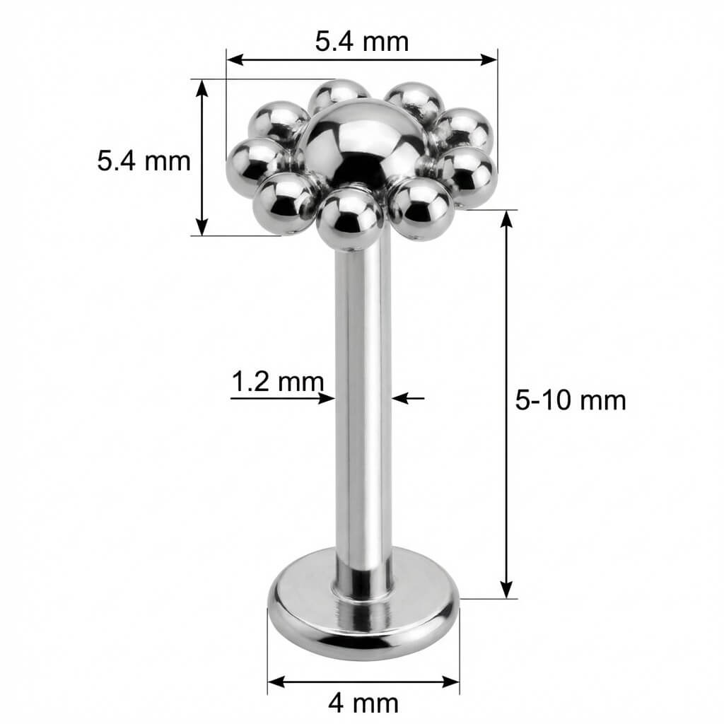 Bring frischen Wind in deinen Look mit diesem süßen Blumen-Design. Die zentrale Kuppel, umringt von kleinen Kügelchen, sorgt für einen verspielten und doch coolen Vibe. Da es aus hochwertigem Titan besteht, ist es hypoallergen und super angenehm zu tragen – jeden Tag. Ein absolutes Must-Have, um dein Helix oder Tragus neu in Szene zu setzen!