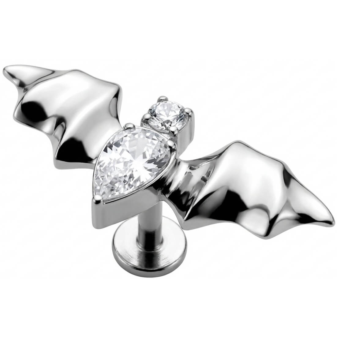 Zeig deine dunkle Seite mit diesem funkelnden Fledermaus-Design. Die klaren Steine fangen das Licht perfekt ein und machen dein Ohr zum absoluten Hingucker. Gefertigt aus hochwertigem Titan, ist dieses Piece super hautverträglich und langlebig. Perfekt für deinen individuellen Look – nicht nur an Halloween!