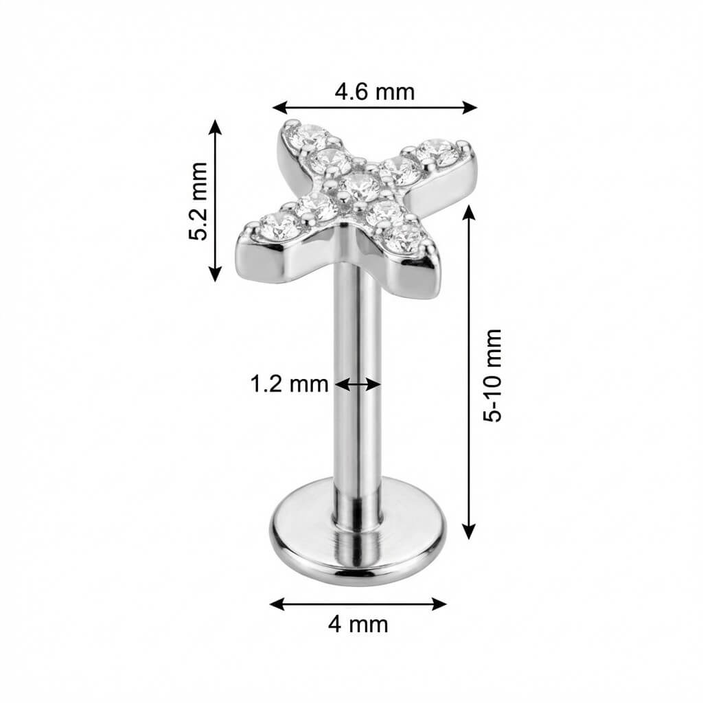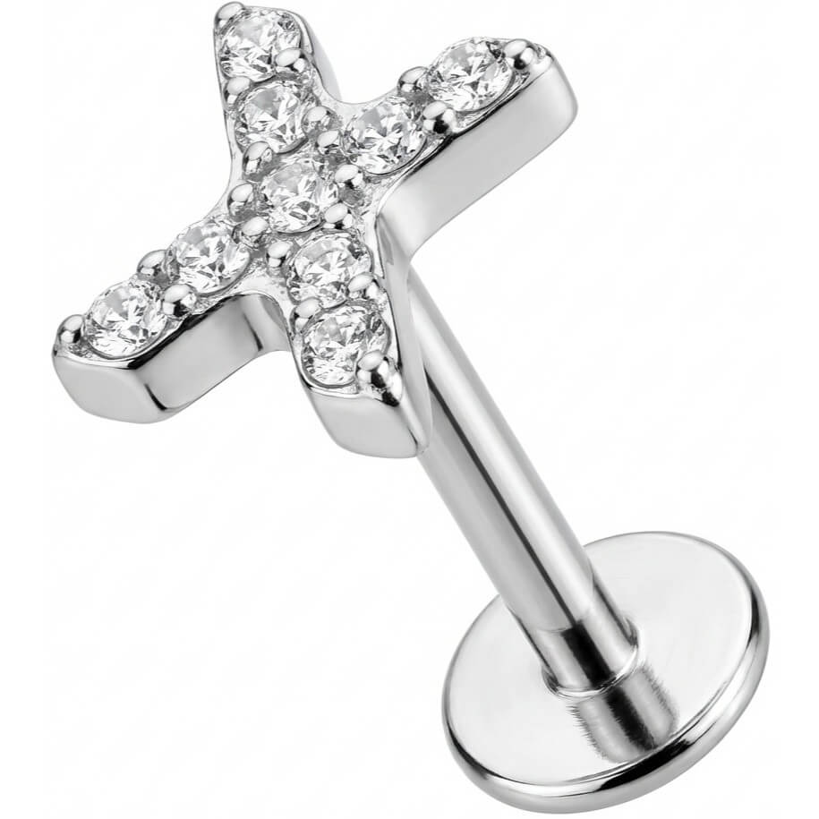 Titan Labret Kristallbesetztes X Motiv Innengewinde