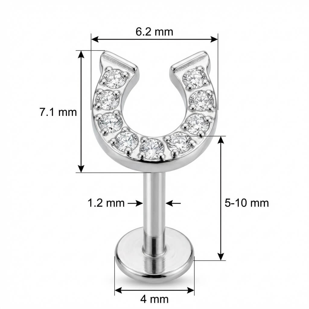 Hol dir eine Portion Glück für dein Ear-Curation! Dieses süße Hufeisen funkelt dank der vielen kleinen Kristalle wunderschön im Licht und zieht alle Blicke auf sich. Da es aus hochwertigem Titan gefertigt ist, ist es besonders hautverträglich und langlebig. Perfekt, um deinem Look ein strahlendes Highlight zu verpassen – egal ob im Helix oder Lobe, dieses Accessoire wirst du lieben.