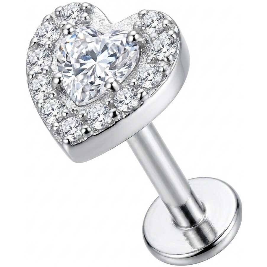 Verliebe dich neu in deinen Style! Dieses wunderschöne Design besticht durch einen großen herzförmigen Kristall, umrahmt von einem Halo aus kleineren, glitzernden Steinen. Das perfekte Highlight für dein Ear-Stacking, egal ob im Helix, Tragus oder Lobe. Gefertigt aus hochwertigem Titan, ist es besonders hautverträglich und langlebig. Hol dir den ultimativen Sparkle!