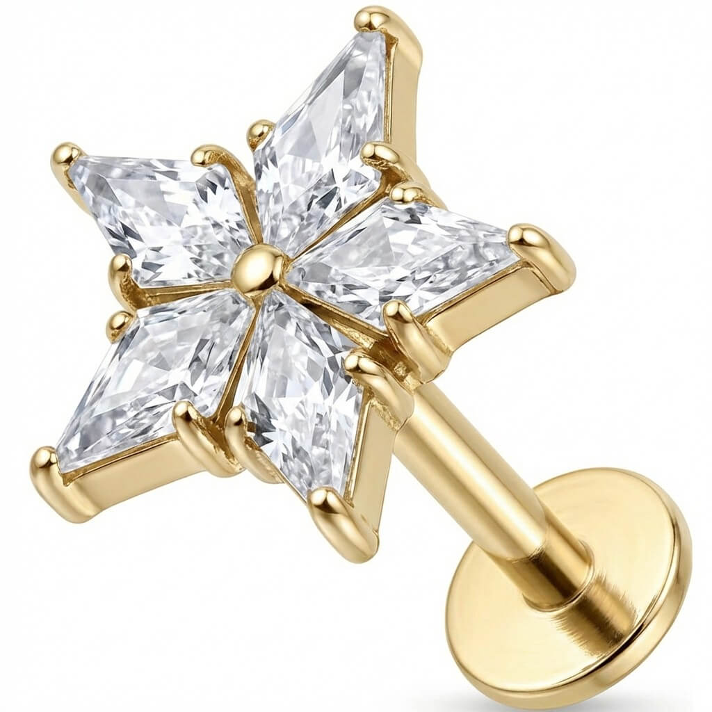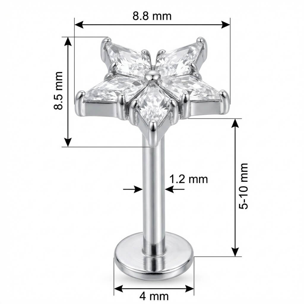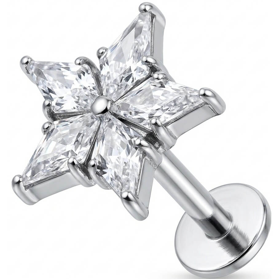 Bring dein Ear-Game auf das nächste Level! Dieses wunderschöne Design besticht durch fünf funkelnde Kristalle, die zu einem perfekten Stern arrangiert sind. Ein absoluter Hingucker, der jedem Look das gewisse Etwas verleiht. Gefertigt aus hochwertigem Titan, ist es besonders hautverträglich und langlebig. Egal ob im Helix, Tragus oder Lobe – mit diesem Glanzstück strahlst du jeden Tag.
