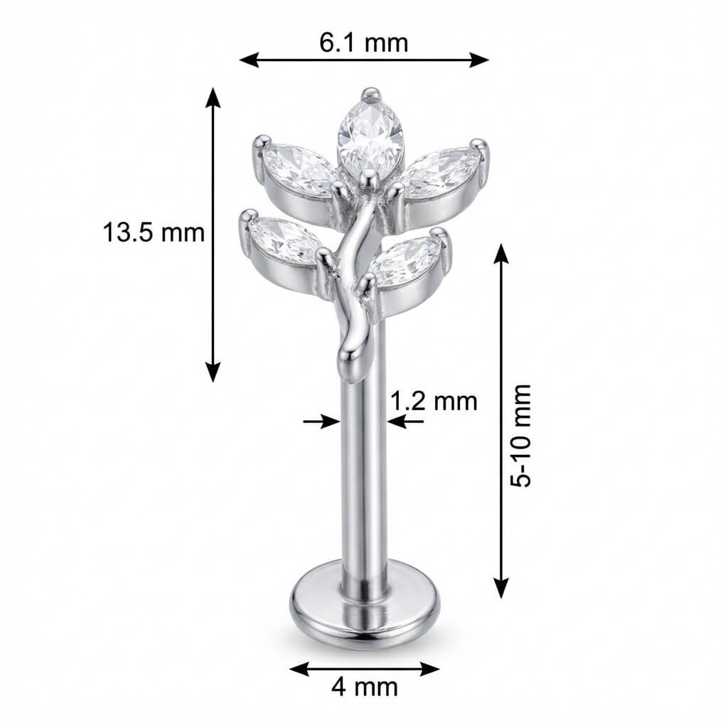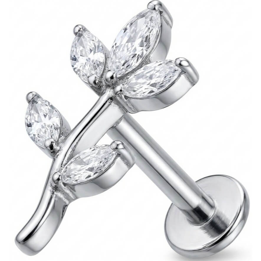Bring dein Ear-Game auf das nächste Level! Dieser wunderschöne Aufsatz zeigt einen sanft geschwungenen Zweig, besetzt mit funkelnden Steinen im Marquise-Schliff. Das Design schmiegt sich perfekt an die natürliche Form deines Ohres an und ist ein absoluter Hingucker im Knorpelbereich. Gefertigt aus hochwertigem Titan, ist das Schmuckstück super hautverträglich und langlebig. Genau das Richtige für deinen individuellen Look!
